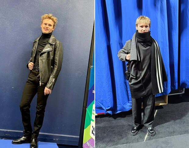 На этапах Гран-при этого сезона Илья предпочитал черные образы: кожаная косуха во Франции и акцент на огромном шарфе в Канаде.