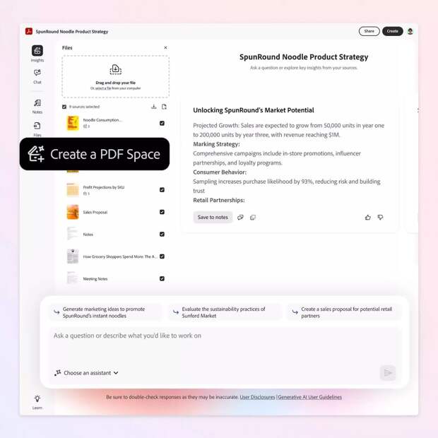 Теперь в Acrobat Studio появились «PDF-пространства» для совместной работы с ИИ-помощниками.
