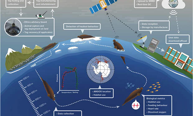 Первая часть экспедиции стартовала еще зимой. На специальную обвязку закрепили оборудование и выпустили в море несколько морских слонов и тюленей Уэдделла, которые в естественных условиях способны нырять глубже многих подводных аппаратов. Пока животные свободно перемещались по привычным маршрутам, приборы фиксировали температуру, соленость и профиль глубин, постепенно формируя карту там, где техника долгое время была бессильна.