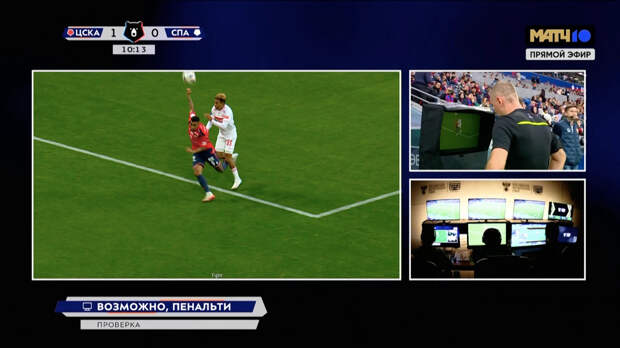 – Во-первых, очень нелогичный эпизод. Во-вторых, для меня было очень интересно увидеть, что главный судья вообще потерял мяч из виду. Если мы посмотрим, то он вообще не видел это падение. Он смотрел, где приземляется мяч, и не видел этого эпизода. Поэтому здесь решение принимал исключительно арбитр ВАР. Посмотрите, куда смотрит главный судья: он ищет мяч, потом поворачивается, и все, что могло произойти, уже произошло.
