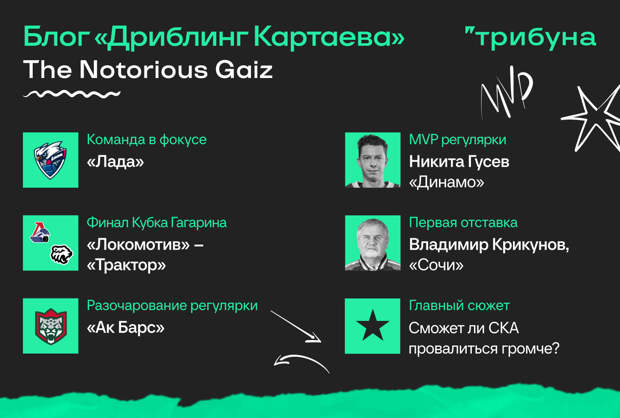 Стратегию «Авангарда» с полным карт-бланшем для Ги Буше я считаю неверной, за что уже получал в комментах своего блога, но мнение не изменил – омичи будут сильными, но в какой-то момент у них что-то сломается, и в условном повторении серии с «Локо» я бы на них не поставил. «Спартак», СКА, Минск и Казань, на мой взгляд, до полноценных контендеров и вовсе не дотягивают, хотя в «зубров» верить очень хочется.