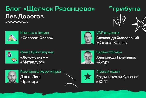 Никита Гусев, если и не станет самым ценным игроком сезона, то как минимум будет держать топ-уровень и свои 50+ выбьет. Великий по меркам нашей лиги хоккеист, в котором я не сомневаюсь.