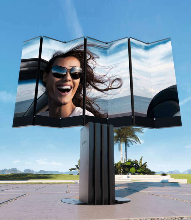 Экран оборудован 4K LED-матрицей с пиковой яркостью более 4000 нит, что позволяет комфортно смотреть видео даже при ярком солнечном свете. Технология Adaptive Gap Calibration делает место соединения панелей полностью незаметным, а встроенная акустическая система мощностью 2700 Вт создает эффект кинотеатра.
